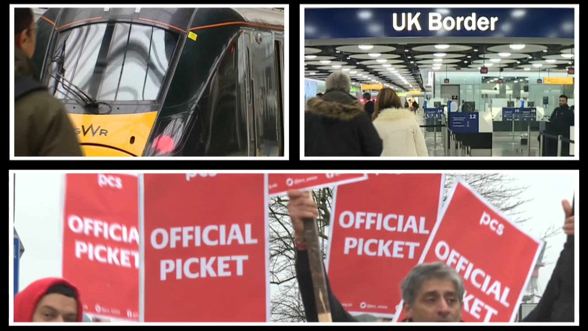 Border Force staff, some railway workers and driving test examiners have been taking industrial action today, with few signs of unions and employers making much progress on pay deals.